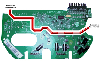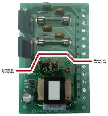 Protective BarriersTo understand this better lets look at the barriers provided on a typical pulse initiator board supplied by the utility.