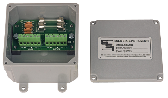 The CID-2 Customer Interface Device is a 2-channel low-cost, fused KYZ termination device which supplements the electric meters’ KYZ pulse initiators. It provides two sets of KYZ connector terminals, one for connection to the two meters’ KYZ output terminals, and the other for the utility customer’s energy control system input terminals.