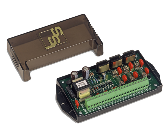 The RPR-33PS’ input and output circuit’s terminal strip connector is a “Euro” type, providing excellent insulation from live electrical contacts. Each “K” lead of the RPR-33PS’ outputs is fused to prevent damage to the relay under almost any condition a user might cause such as excessive current, incorrect wiring, etc. The RPR-33PS’ robust solid state switching device is rated at 800V at 750mA giving maximum protection from lightning or transient voltage damage. Its built-in transient protection for the solid state switch contacts eliminates the need for external or off-board transient suppression devices. All component parts that have power applied to them, with the exception of the input/output terminal strip are enclosed in a polycarbonate cover for maximum protection. The mounting base plate is also made of polycarbonate and offers excellent electrical insulation between the circuit and the mounting surface.