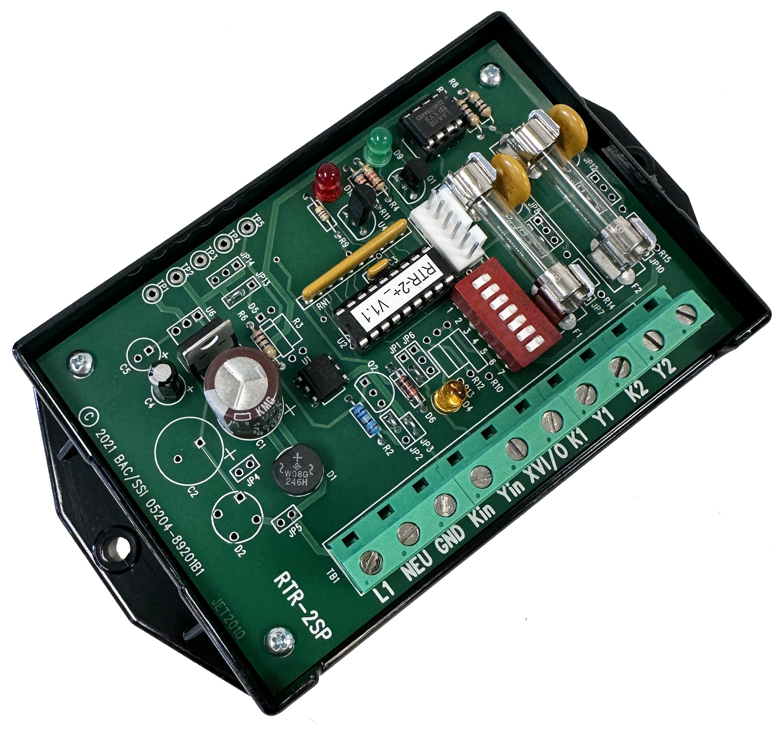 B SeriesThe RTR-2SP High-Speed Repeating Pulse Relay is designed to interface pulse output from water or gas meters to other systems. The RTR-2SP is configured with a Form A input and two Form A (KY) isolated solid-state dry contacts and features a Low Voltage power supply input ranging from 13 to 35VDC. Most water and gas meters with a pulse output will directly interface to the RTR-2SP’s input, whether it is an open-collector transistor, open drain FET, MOSFET solid state relay, read reed switch or a dry-contact relay. The input is activated when the input (Y) is switched from its “pulled-up” state to ground (K) for at least a minimum pulse time. Four input filter times are field-selectable: 50 microseconds, .5, 5 or 20 milliseconds.
