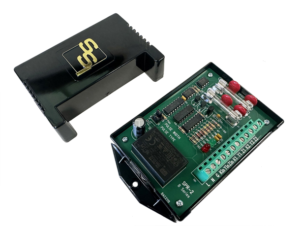 The SPR-2 has built-in MOV transient protection for the solid state relay contacts that eliminates the need for external protection. All component parts which have power applied to them, with the exception of the input/output terminal strip are enclosed in a polycarbonate cover for maximum protection. The mounting base plate is also made of polycarbonate and offers excellent electrical insulation between the circuit and the mounting surface. The SPR-2 is normally mounted inside another enclosure, suitable for the user’s intended application.